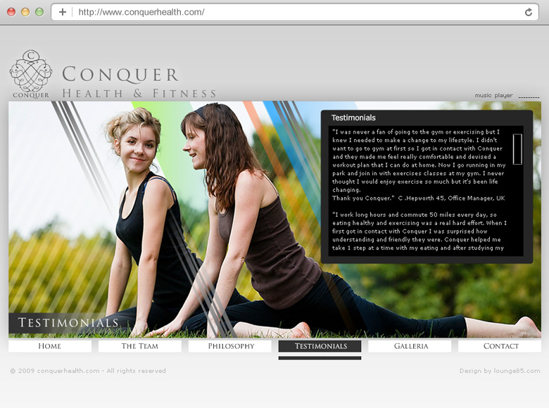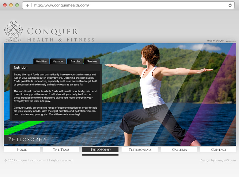 Lounge85 was approach by Conquer Health and Fitness to root out a brand identity that shines prestige to high-end clients. Market research and strategy was carryout to discover the target audience and an online strategy to increase awareness.